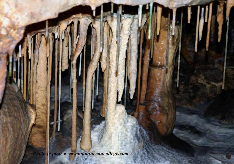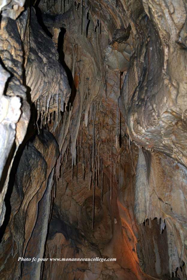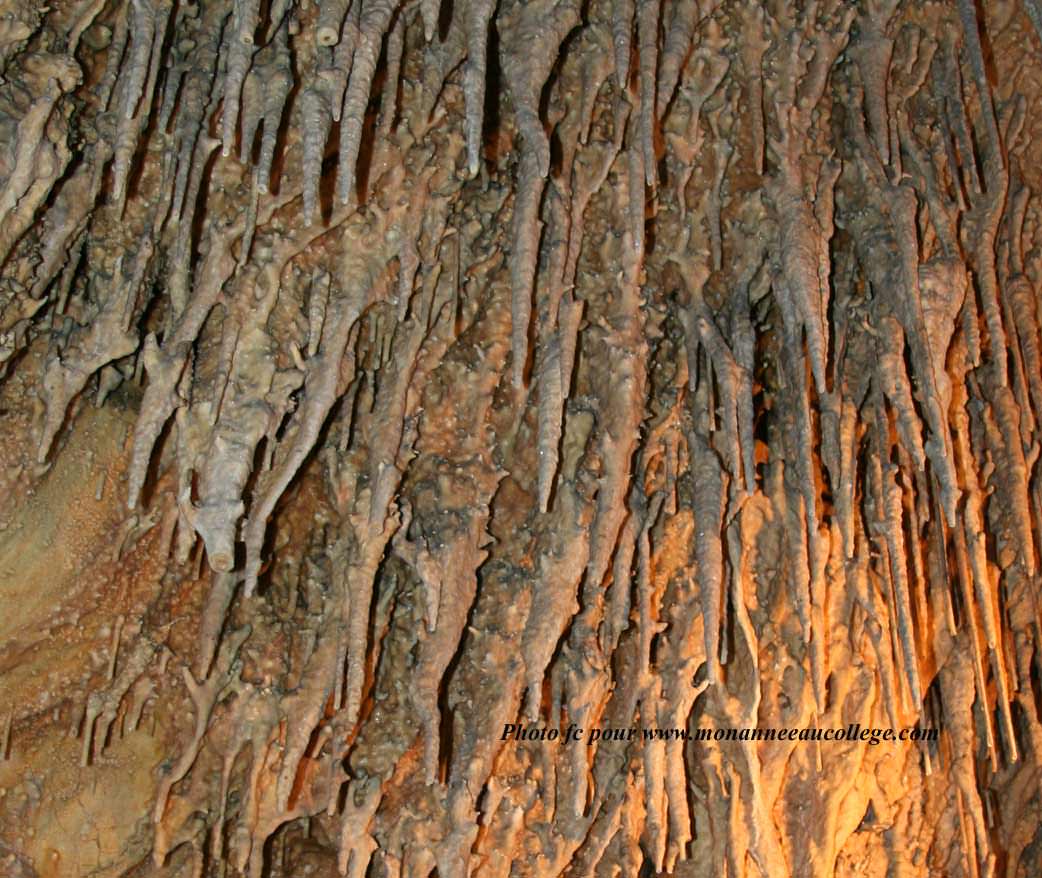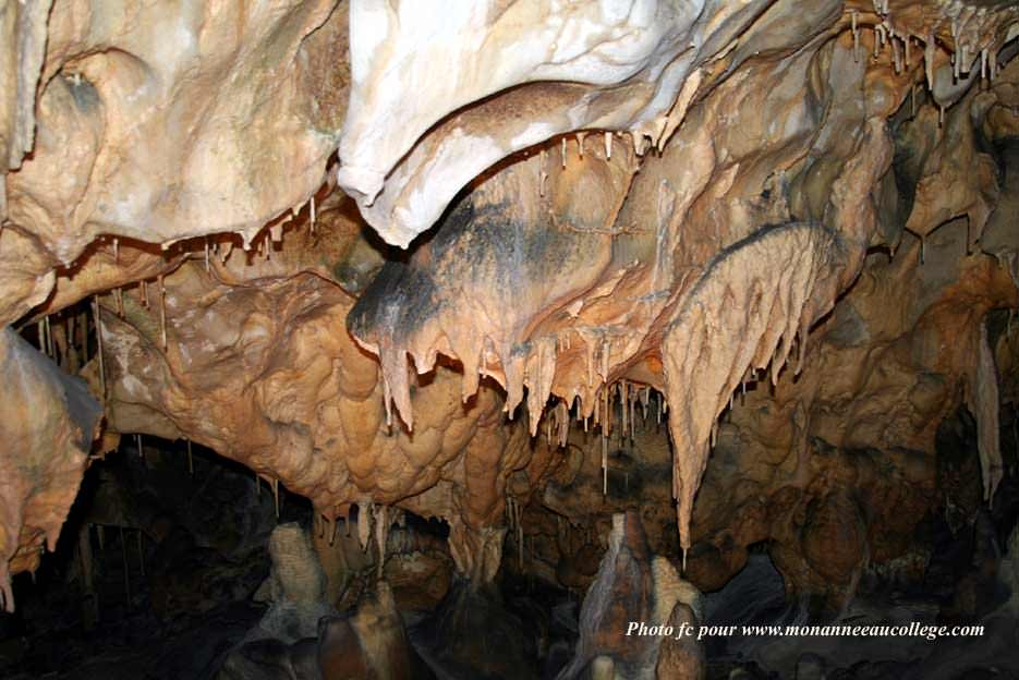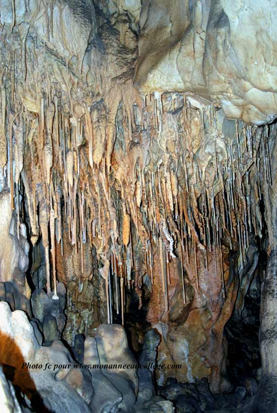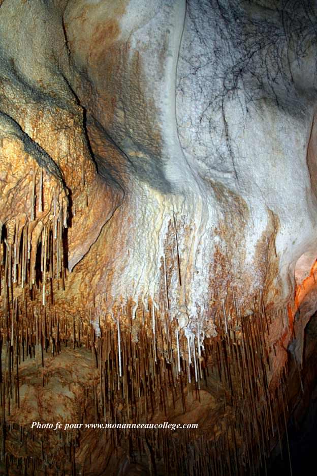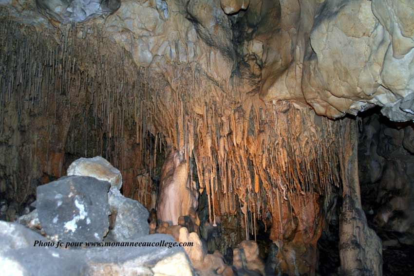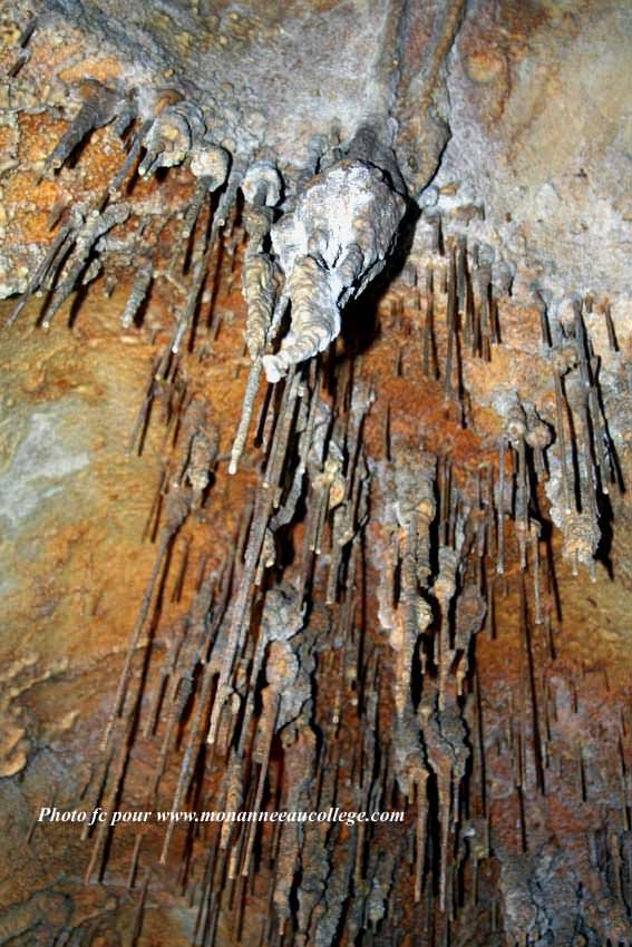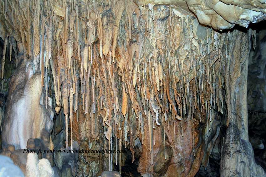 Découverte en 1902 lors de l'exploitation d'une carrière, la grotte de Thouzon est une galerie horizontale située seulement à 15 mètres de profondeur parallèlement à la surface. Elle est située dans une butte témoin d'un vieux massif calcaire (crétacé), elle contient de nombreuses stalactites fistuleuses jaune or. Elle témoigne du travail de l'eau accompli durant des années, tant au niveau de l'érosion que de la formation des stalactites et des stalagmites. |