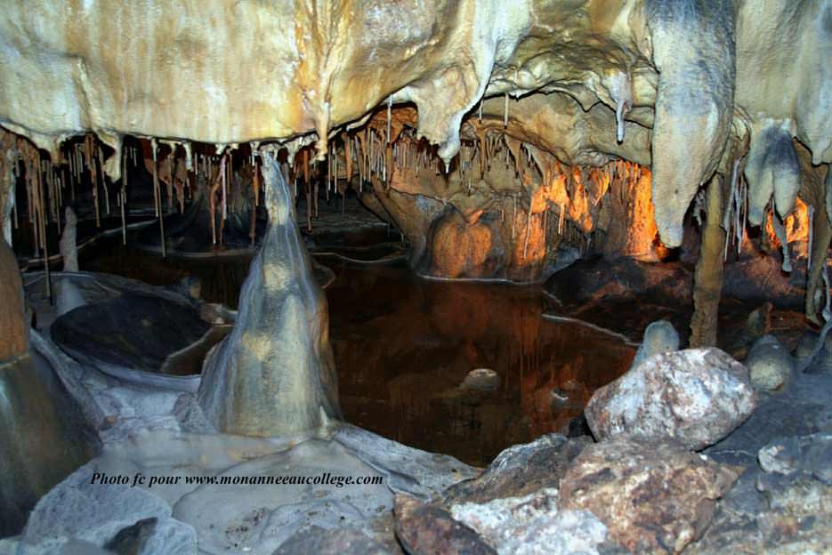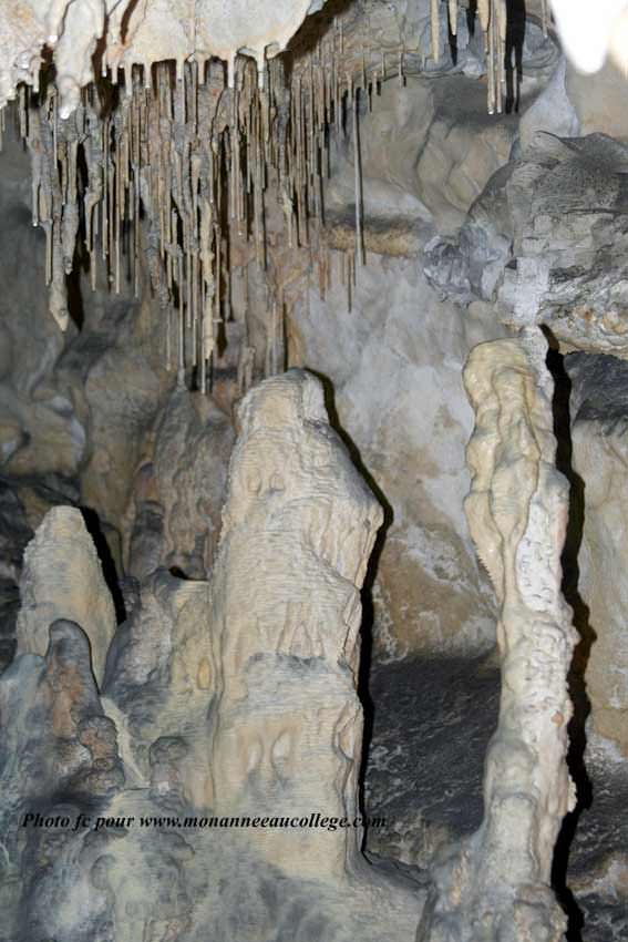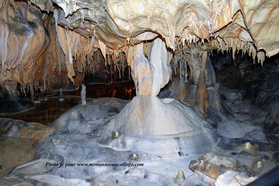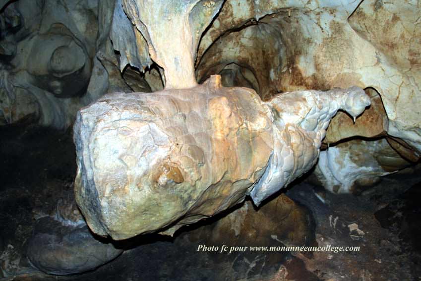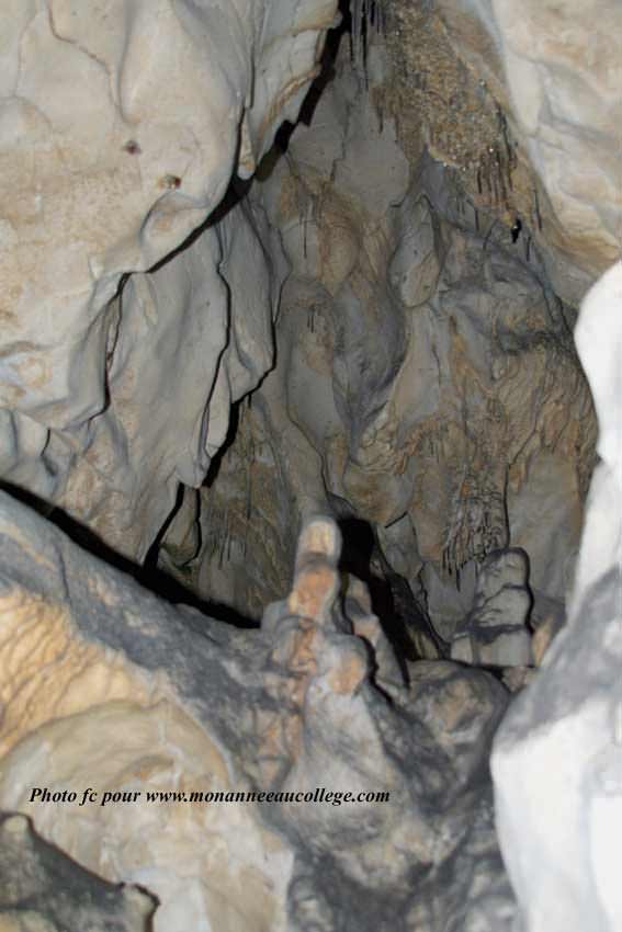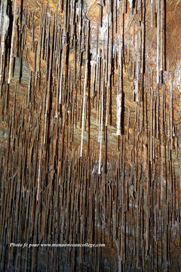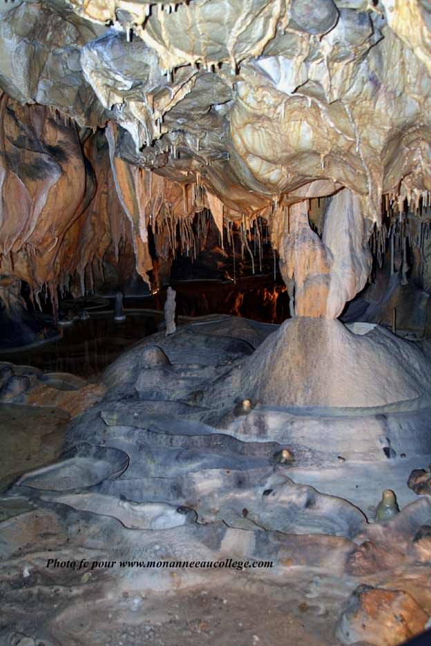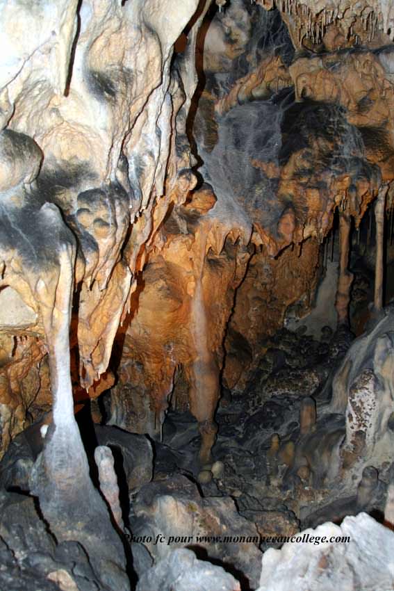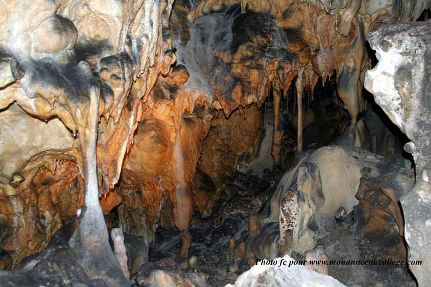 Découverte en 1902 lors de l'exploitation d'une carrière, la grotte de Thouzon est une galerie horizontale située seulement à 15 mètres de profondeur parallèlement à la surface. Elle est située dans une butte témoin d'un vieux massif calcaire (crétacé), elle contient de nombreuses stalactites fistuleuses jaune or. Elle témoigne du travail de l'eau accompli durant des années, tant au niveau de l'érosion que de la formation des stalactites et des stalagmites. |