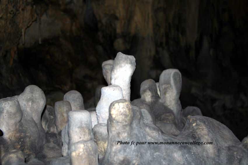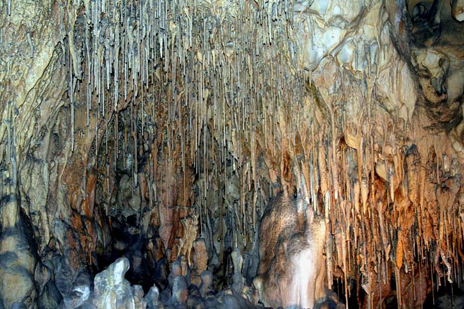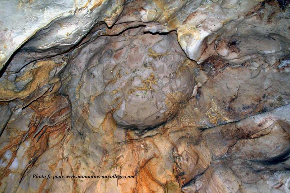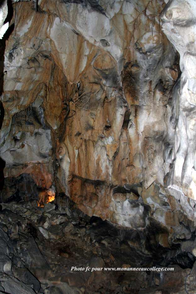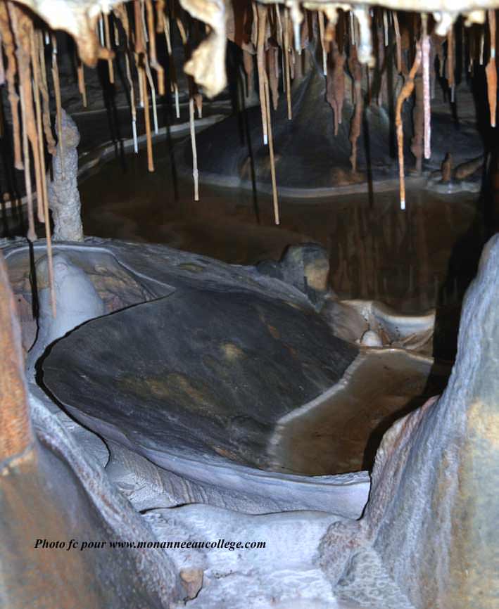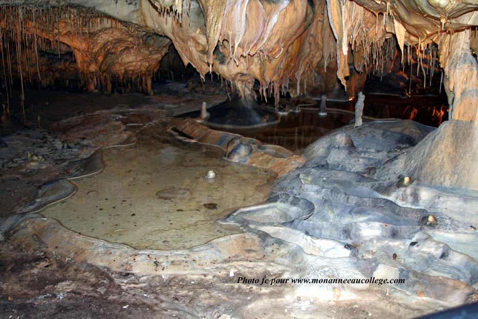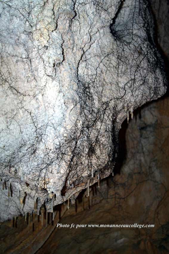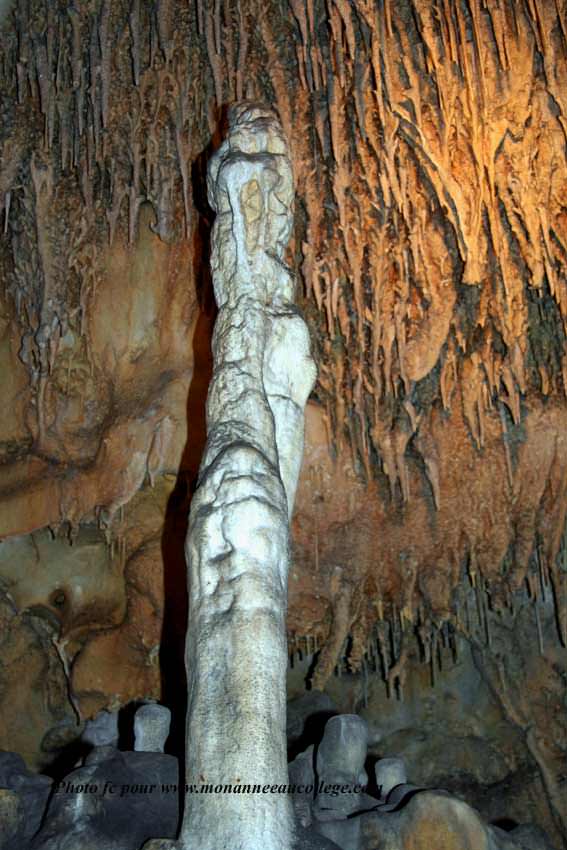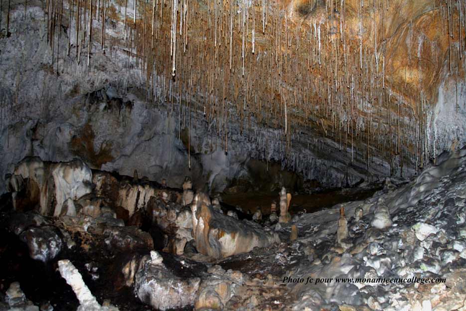 Découverte en 1902 lors de l'exploitation d'une carrière, la grotte de Thouzon est une galerie horizontale située seulement à 15 mètres de profondeur parallèlement à la surface. Elle est située dans une butte témoin d'un vieux massif calcaire (crétacé), elle contient de nombreuses stalactites fistuleuses jaune or. Elle témoigne du travail de l'eau accompli durant des années, tant au niveau de l'érosion que de la formation des stalactites et des stalagmites. |