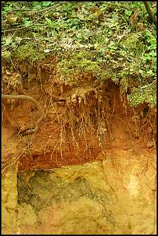 sables des falaises. L'oxyde de fer le colore du jaune au violacé.